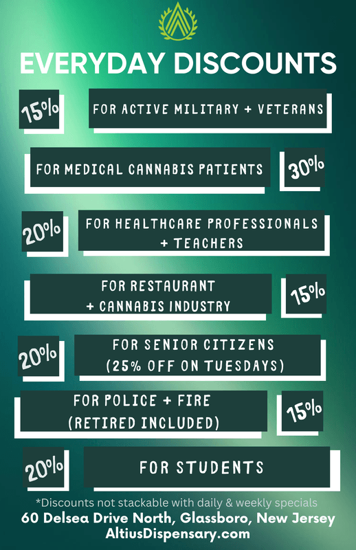 At Altius Dispensary, we love giving back to our community! That’s why we offer special everyday deals for select groups!
