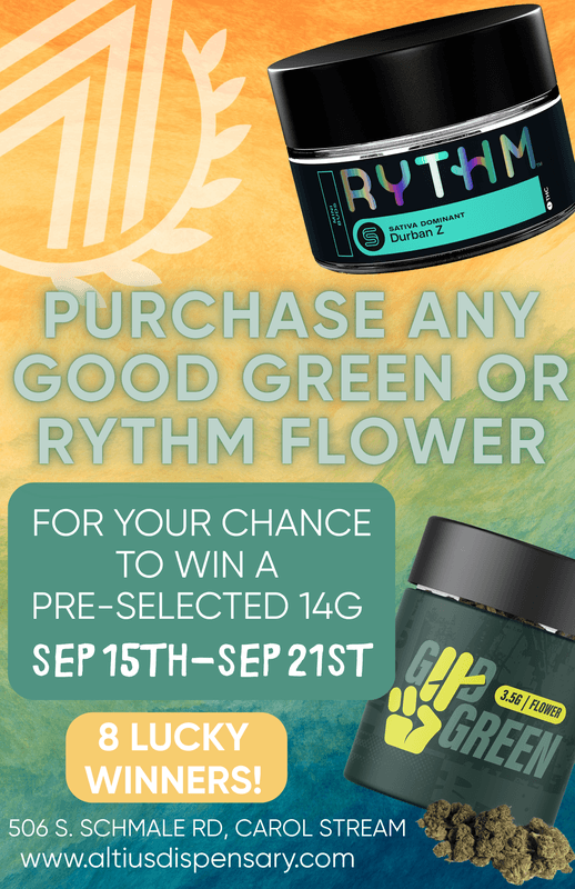 Exciting news for all flower lovers! From September 15th through September 21st, Altius Dispensary in Carol Stream is giving you the chance to win a pre-selected 14g flower.